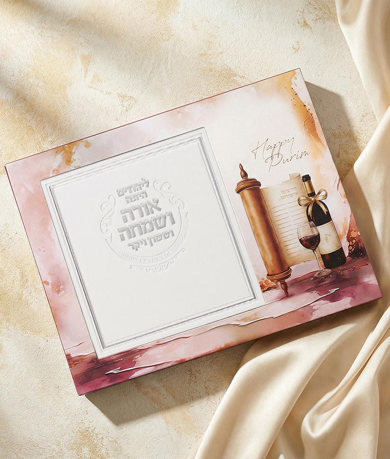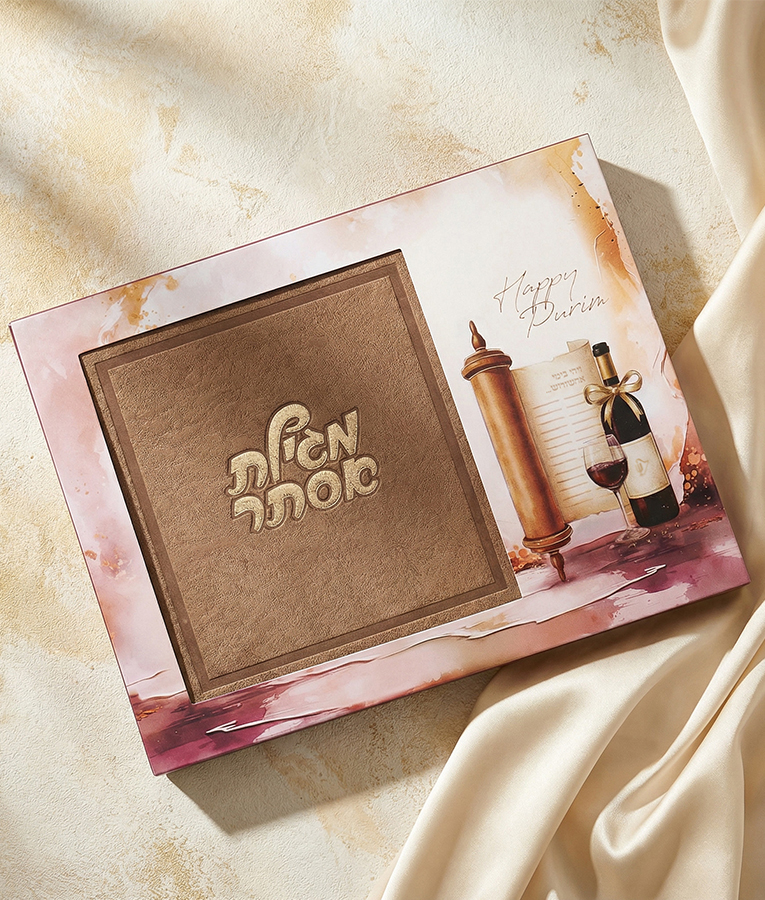 המארז מכיל מגילת אסתר מהודרת בכריכת דמוי עור מפוארת (לבחירתכם, 3 דגמים מתאימים)